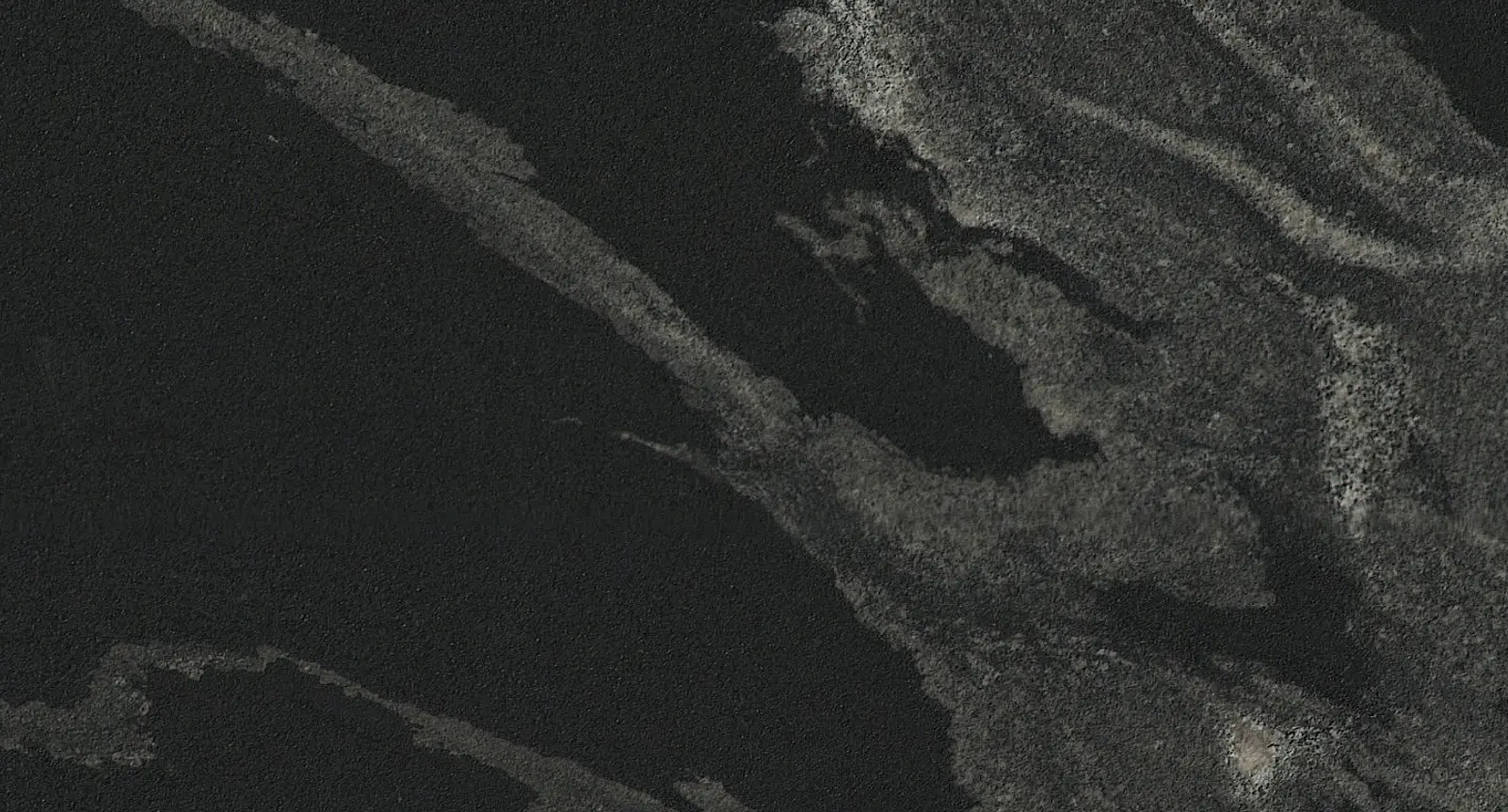 Black mamba granite features a deep, rich black base with dramatic diagonal veining in charcoal gray and silver tones that sweep across the surface like brushstrokes. The stone displays bold, fluid movement with veins that flow diagonally from corner to corner, creating a dynamic sense of motion and energy. The veining appears almost metallic in places, with subtle shimmer and dimensional qualities that add depth to the dark background.