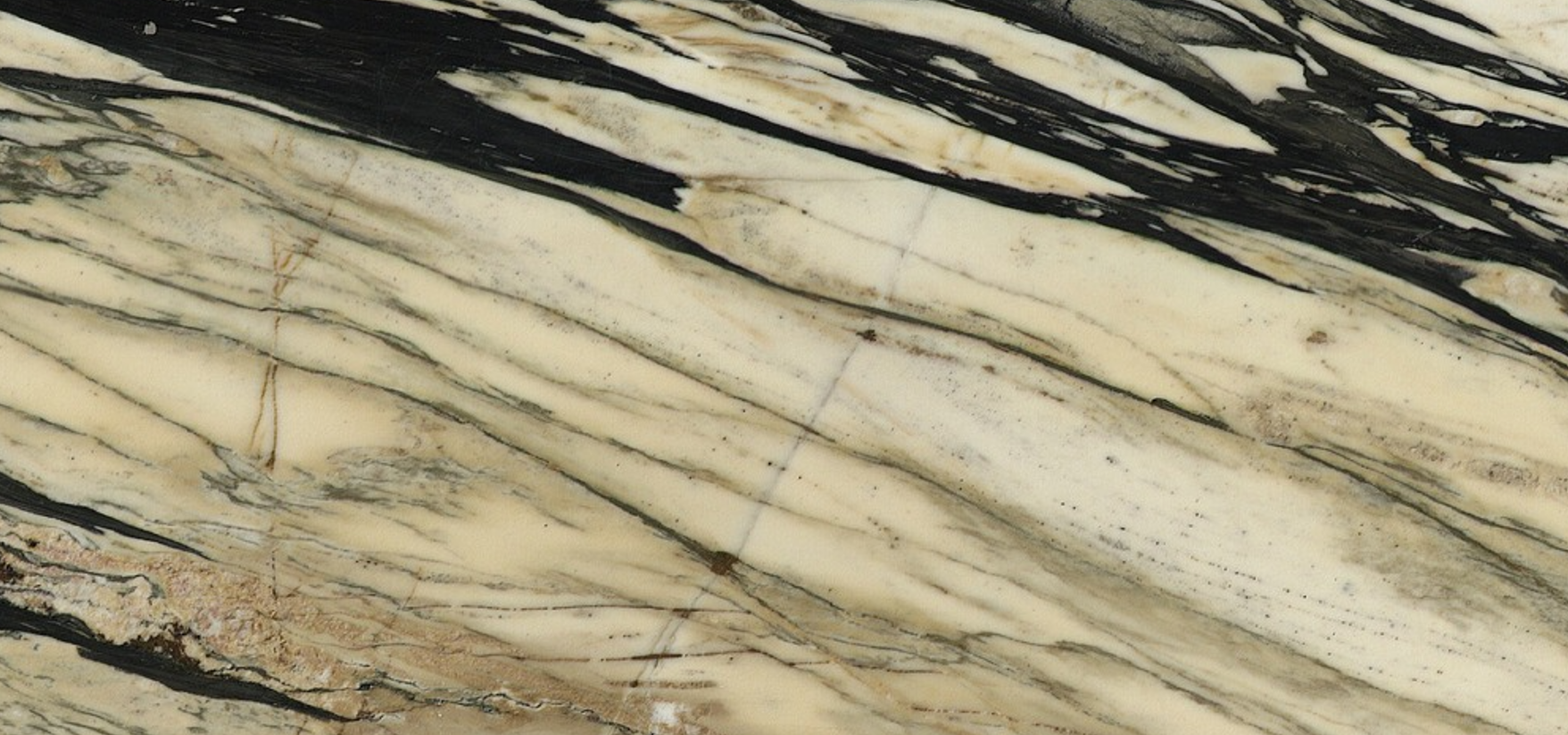 Calacatta Santos Marble is a natural stone with a sharp, clean look. It has a creamy white base with prominent black veins running across the surface, creating a strong contrast that works well in modern settings. The veining patterns vary in each slab, giving every piece a distinct appearance.