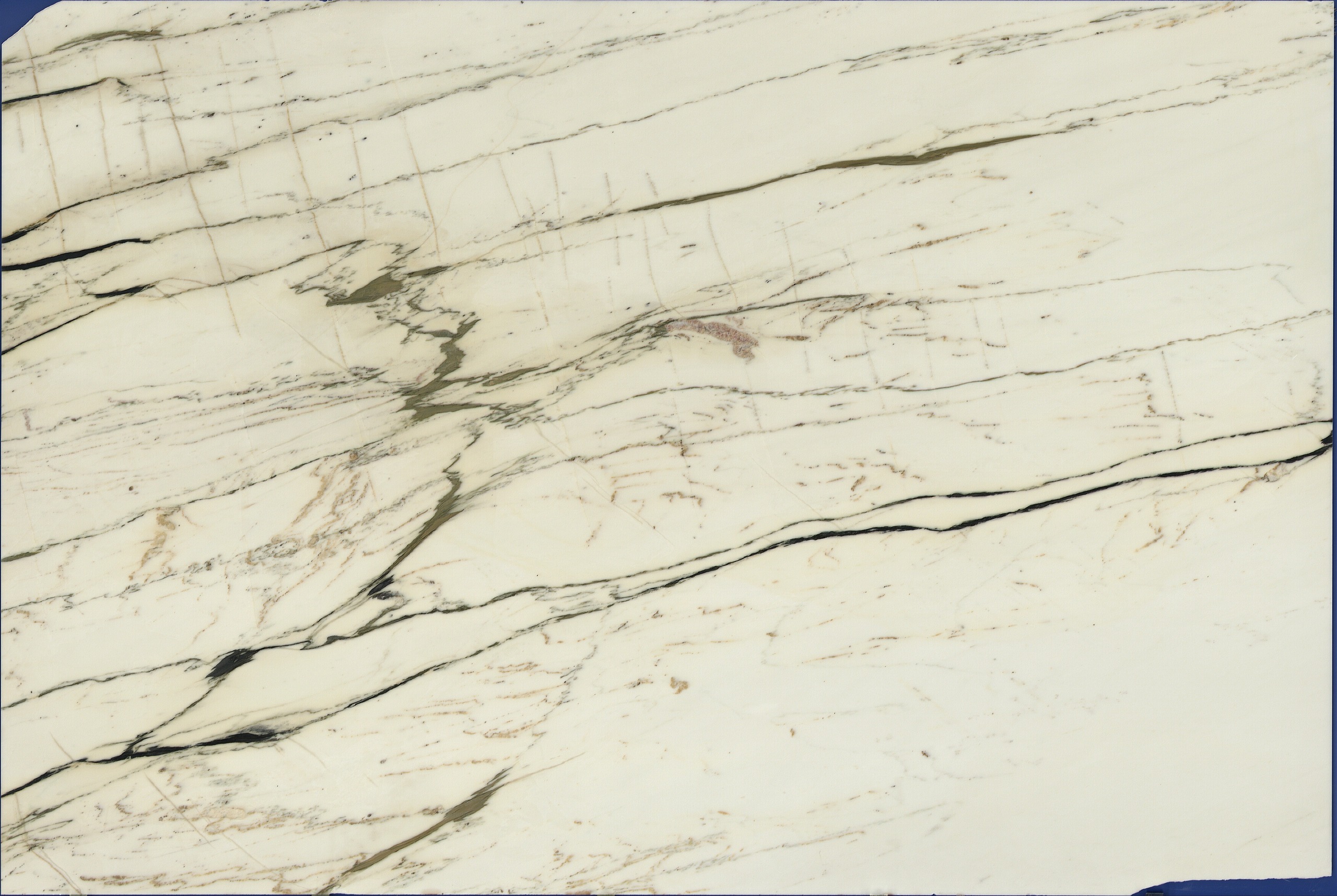 Calacatta Santo Marble (Light Vein Variation) is a refined natural stone featuring a luminous creamy white base with lighter, bolder veining in soft gray and subtle gold tones. Its polished surface highlights the striking, flowing patterns, offering a sophisticated yet understated elegance. Ideal for countertops, flooring, and accent walls, it brings timeless luxury to modern and classic interiors.