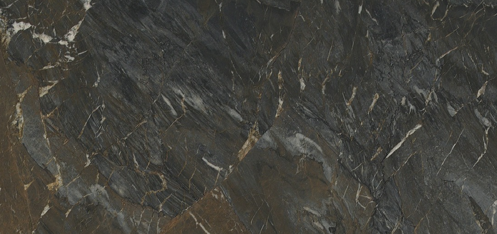 Tundra Brown marble displays a rich, earthy palette with deep chocolate and charcoal tones as the dominant base. The stone features intricate white and light gray veining that creates dramatic contrast against the dark background, with veins flowing in organic, multidirectional patterns. Subtle bronze and taupe undertones add warmth throughout the surface, while fine crystalline details and varying vein densities create visual depth and texture. This sophisticated marble offers bold character with its striking contrast between dark earth tones and bright veining, perfect for creating dramatic, luxurious statement pieces.