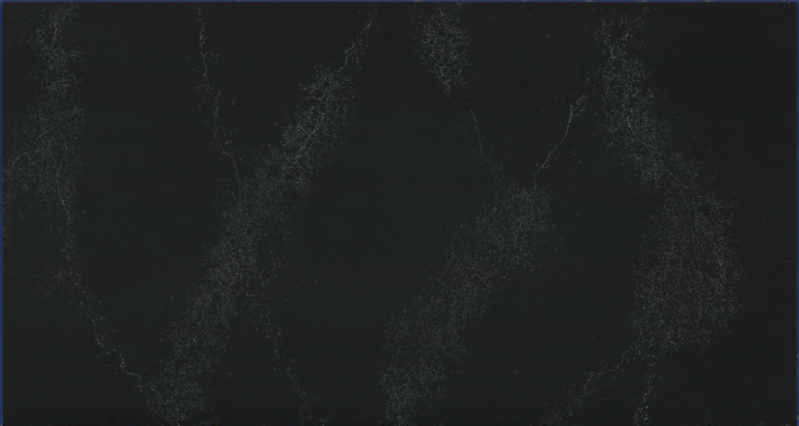 Boho Black quartz showcases a deep, rich black base with subtle gray and white veining that creates an elegant marbled effect throughout the surface. The delicate veining patterns flow organically across the dark background, adding sophisticated movement and visual interest without overwhelming the stone’s bold character. Fine speckled details and lighter mineral deposits are scattered throughout, providing texture and depth that catches light beautifully. This engineered quartz offers a dramatic yet refined appearance that works well in both contemporary and traditional settings, delivering the timeless appeal of natural black marble with consistent patterning and superior durability.